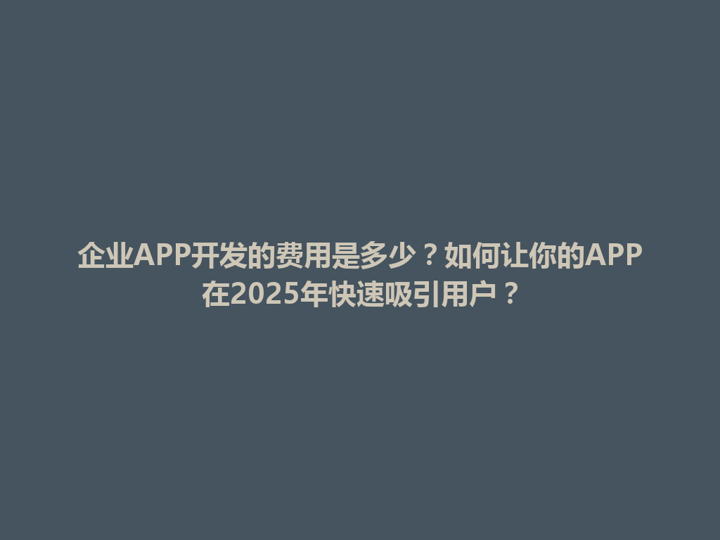 剑川县企业APP开发的费用是多少?如何让你的APP在2025年快速吸引用户?